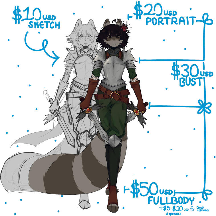 backgrounds are not included, and will cost extra> either 100% upfront or split 50% after the sketch is approved and 50% before finished artwork is sentDELIVERY